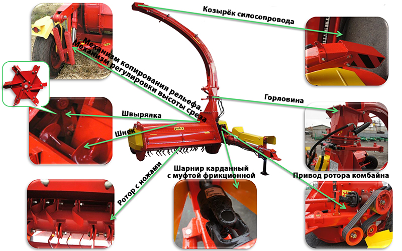 - Одновременно измельчает и загружает в транспортные средства измельченный грубоструктурный зеленый корм.