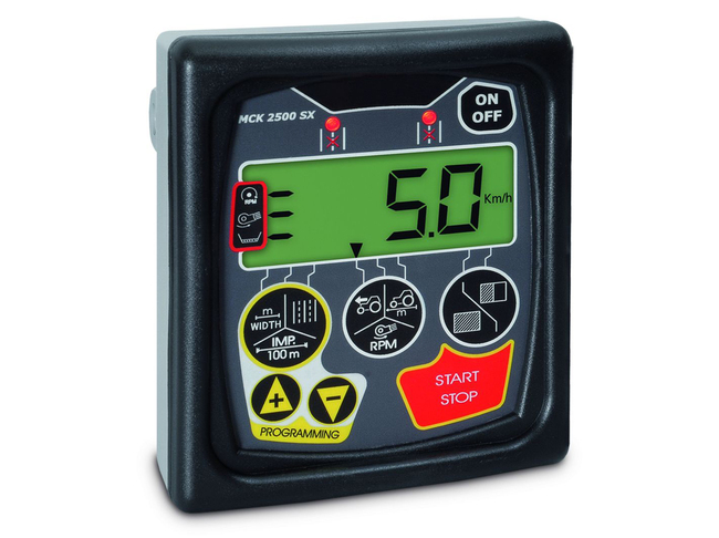 Монитор MCK 2500 применяется на грядковой сеялки и служит для автоматического распознавания колеи для последующих операций с распылителем, в результате чего некоторые грядки осатются без семян за счет использования электронных клапанов, которые блокируют прохождение семян. Данное устройство также показывает все действия, необходимые для посева и работы сеялки.