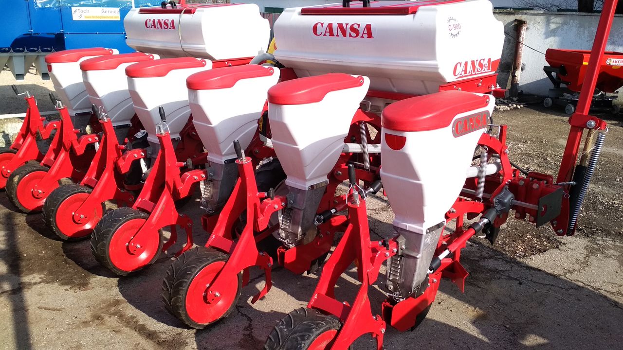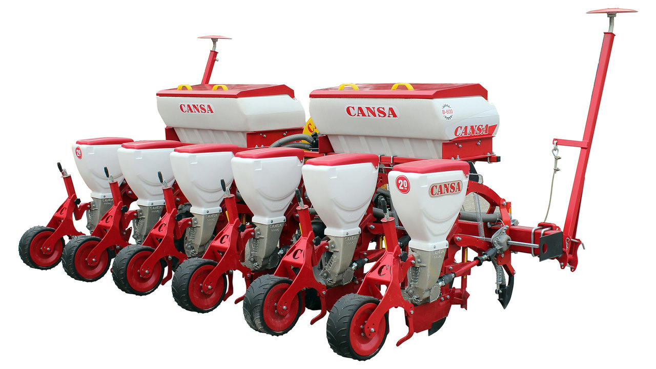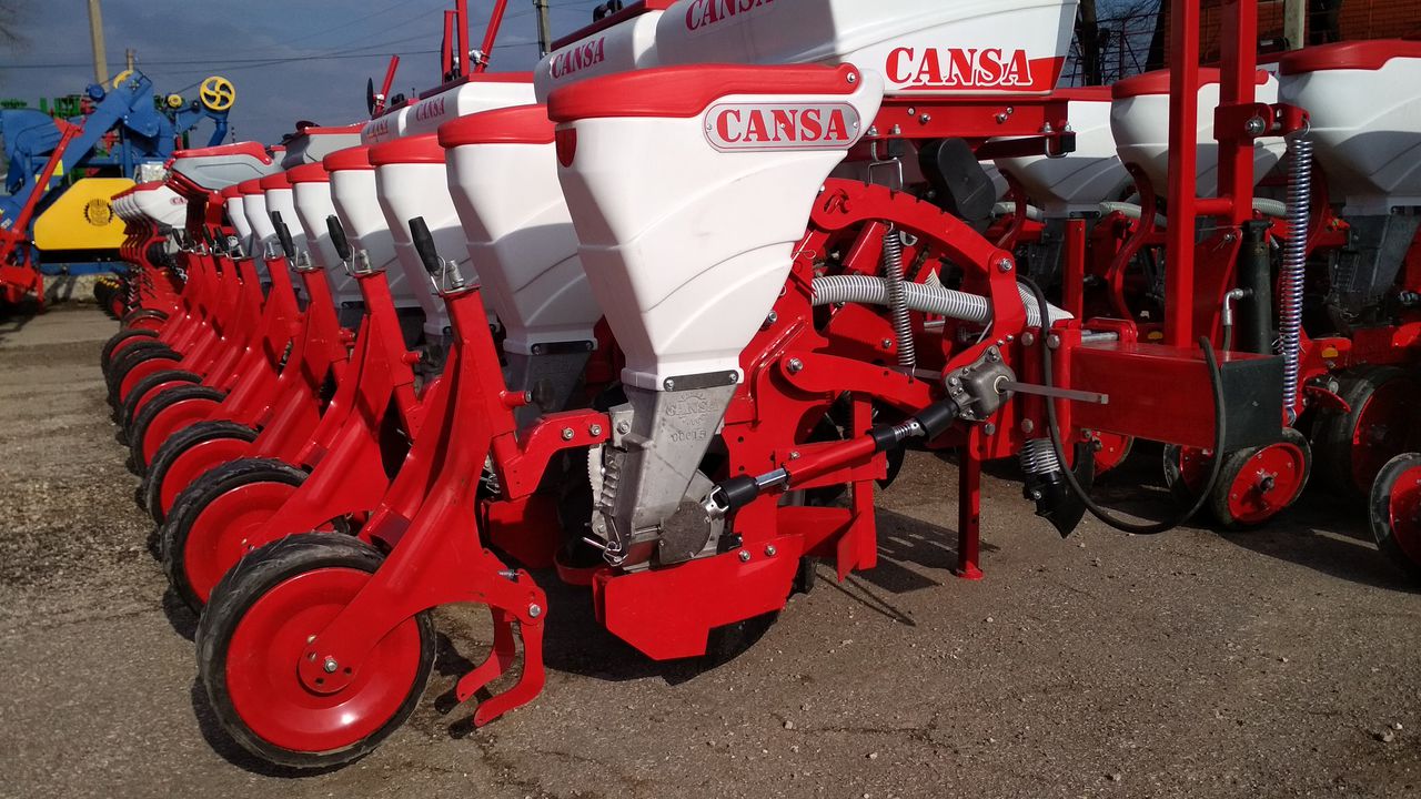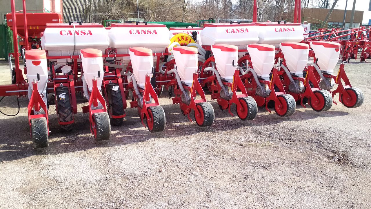 Универсальные пневматические сеялки точного высева CANSA (анкерные) - предна­значены для точного высева калиброванных и некалиброванных семян кукуру­зы, подсолнечника, клещевины, сорго, сои, а также семян кормовых бобов, фасоли, люпина с одновременным, раздельным от семян внесением гранулированных минеральных удобрений анкерным сошником и прикатыванием почвы сплошным прикатывающим колесом.