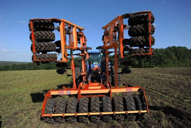 - Трёхрядное расположение культиваторных лап с шагом по следу 315мм и надёжным предохранительным устройством от камней с усилием срабатывания 600 кгс, высокое расположение рамы, наличие ряда дисков и прикатывающих колёс повышенной проходимости обеспечивают высокую проходимость культиватору и универсальность его применения.