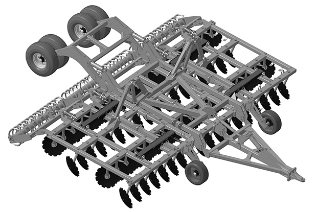 Борона дисковая БДМ – модульная полуприцепная с 4-х рядным расположением рабочих органов предназначена для рыхления и подготовки почвы под посев зерновых, технических и кормовых культур, уничтожения сорняков и измельчения пожнивных остатков, для предпосевной подготовки почвы без предварительной вспашки и обработки почвы после уборки толстостебельных культур.
