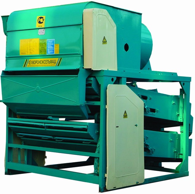 Машина первичной очистки зерна ЗВС-20А выделяет из зернового материала колосовых, крупяных, зернобобовых культур, кукурузы, подсолнечника и сорго крупные, мелкие и легкие примеси.