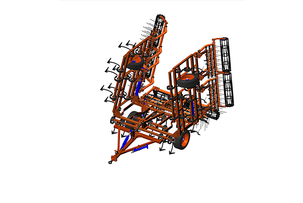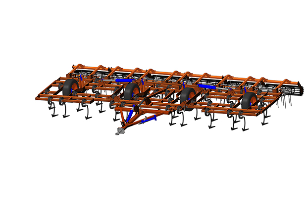 - Радиальная подвеска рабочих органов обеспечивает копирование рельефа почвы. - Стрельчатые лапы выполнены из стали 65Г, усиленная рама (брус 100х100 мм, а также применение раскосов исключают возможность изгиба.