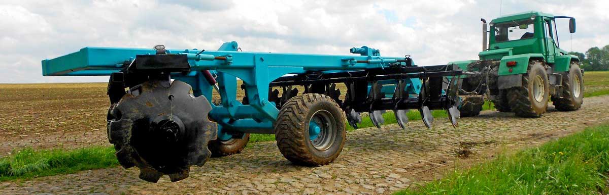 Бороны дисковые тяжелые прицепные БДВП - предназначены для разрыхления необработанных земель разного механического состава, возделывания задерневших пластов после вспашки, измельчения остатков грубо стебельчатых культур после жатвы и заделывания их в почву, а также для подготовки почвы под посев без основного глубокого возделывания земли.