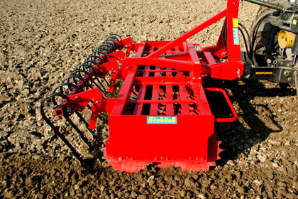 -подпружиненный тяговый брус, без использования инструмента регулируемый по высоте, осуществляет повторное крошение и разравнивание комьев земли;