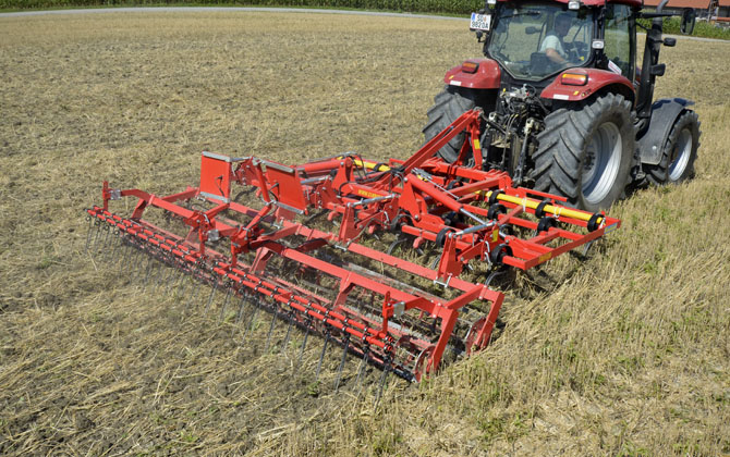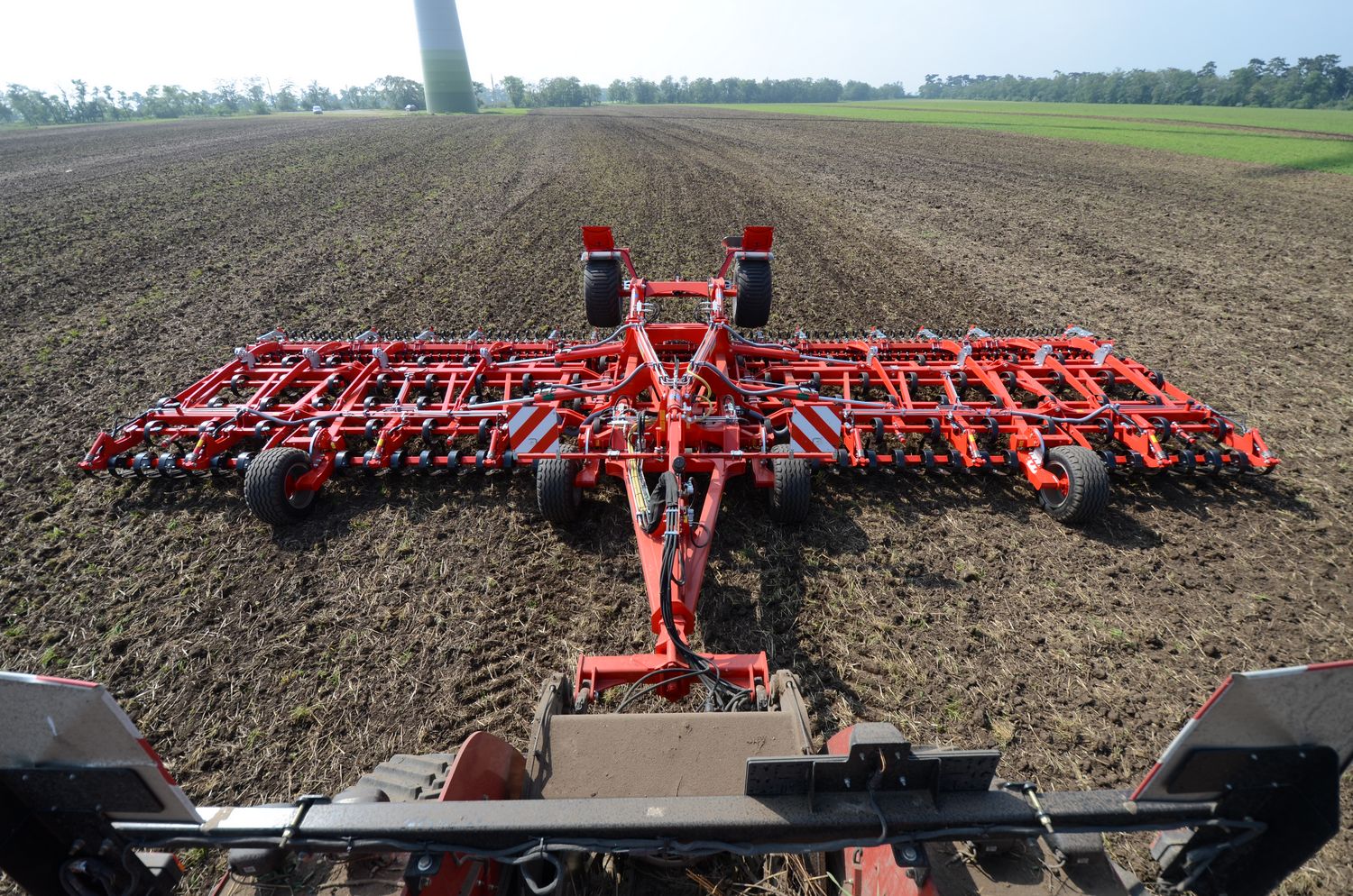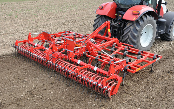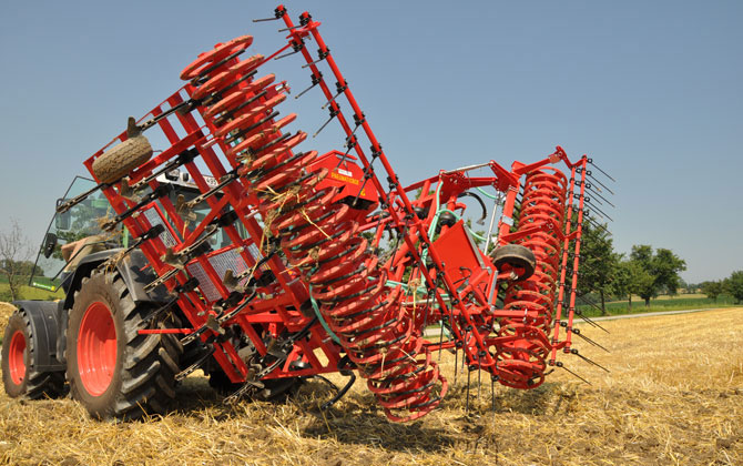 - Катки регулируются по высоте параллельно. Для достижения эффективной обработки почвы между последним рядом рабочих органов и разными орудиями монтируются двойные пассивные зубья, которые обеспечивают точное разравнивание.
