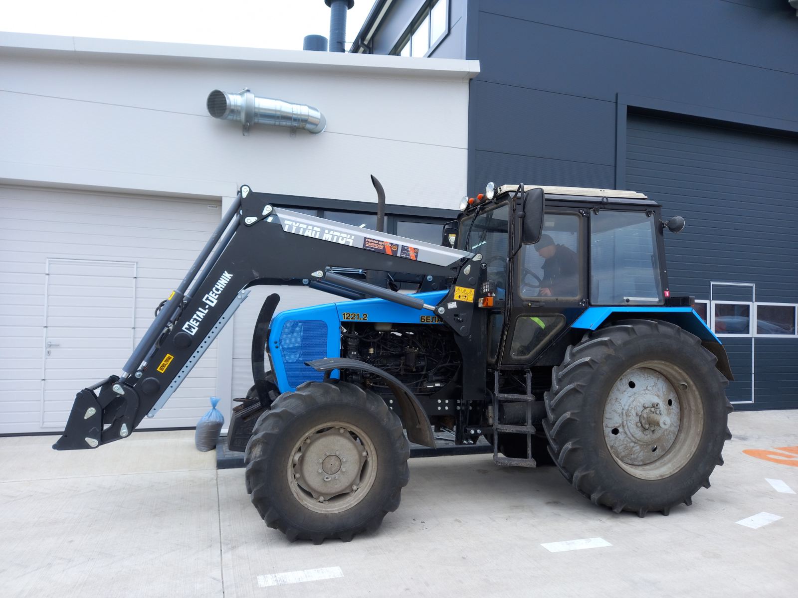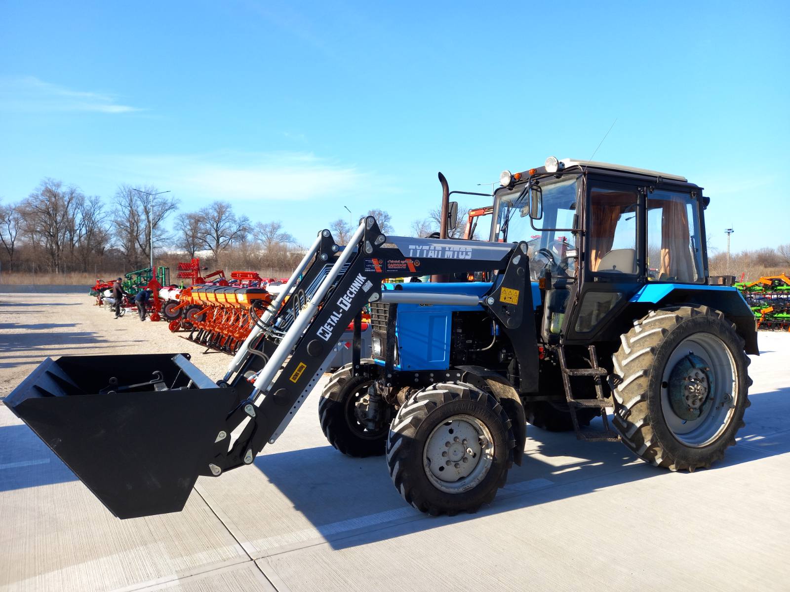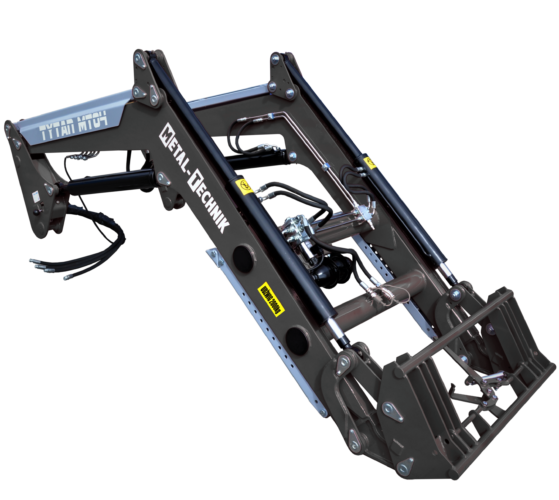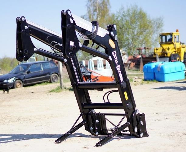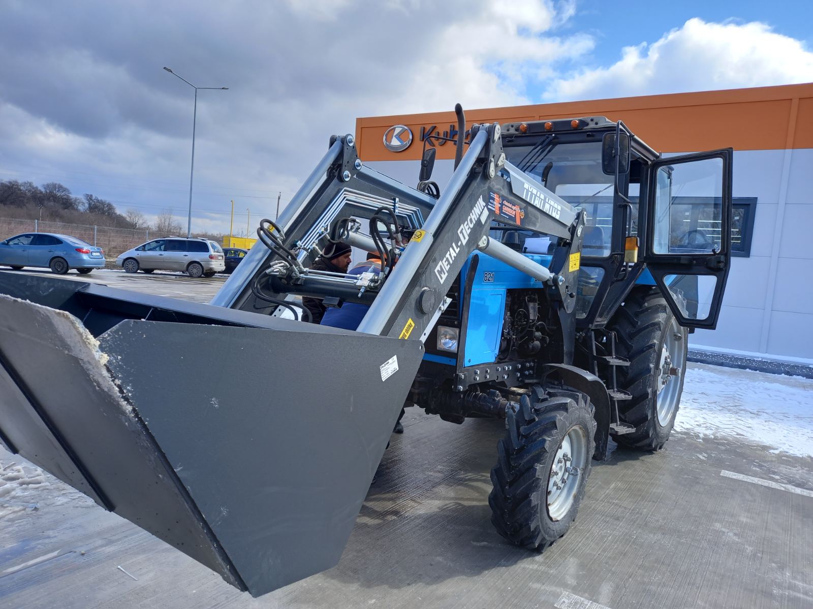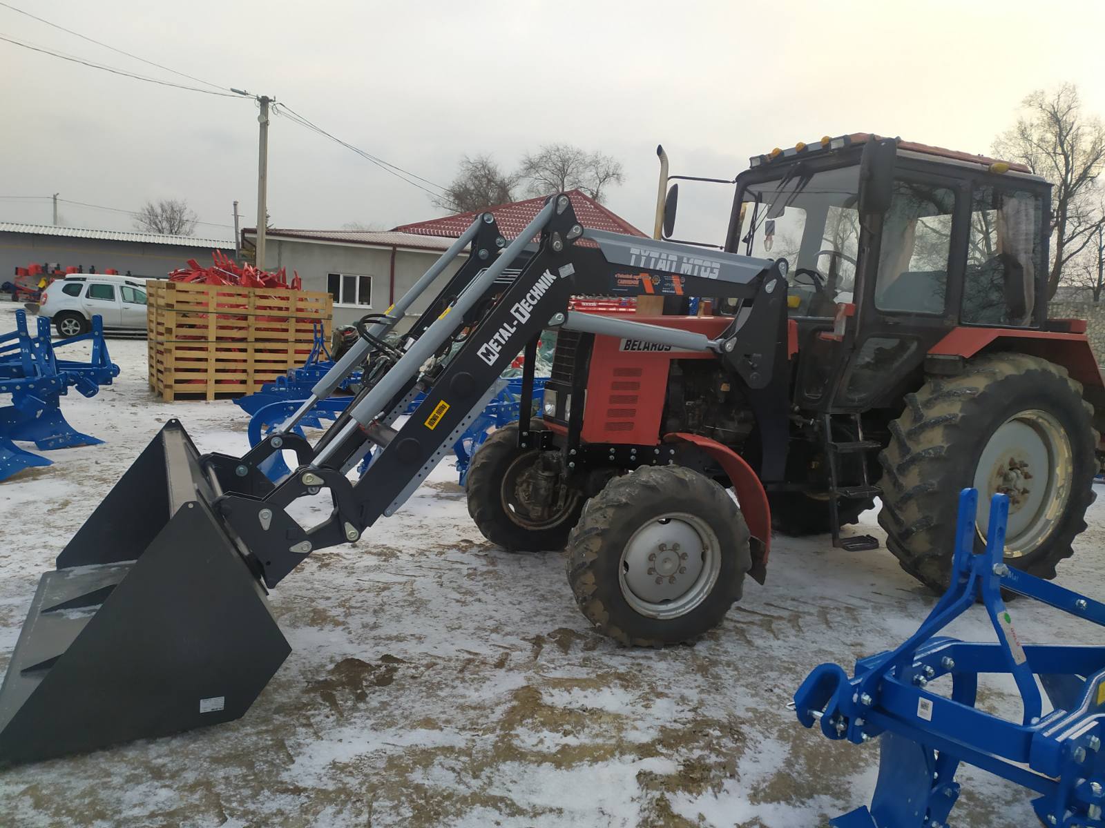Погрузчик быстросъемный, оснащен итальянским гидро-распределителем и двумя гидроцилиндрами, усиленными кронштейнами, креплением к трактору, управление на джойстике. Рама усилена цельной металлической пластиной и двумя насквозь проваренными ригелями Ø 90 мм.