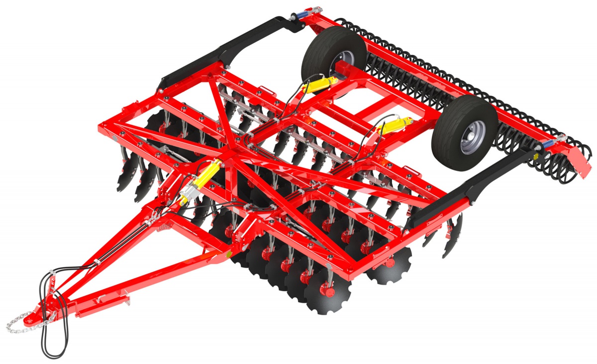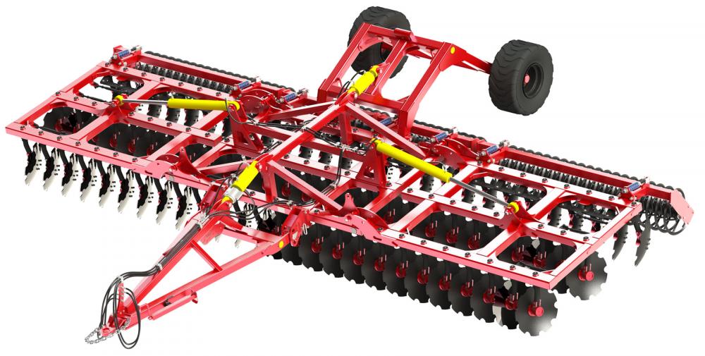 Трёхрядная борона ДИАС - предназначен для поверхностной обработки почвы на глубину до 15 см., измельчение пожнивных остатков с последующей их заделкой в обрабатываемый слой почвы без предварительной вспашки, уничтожение сорняков.