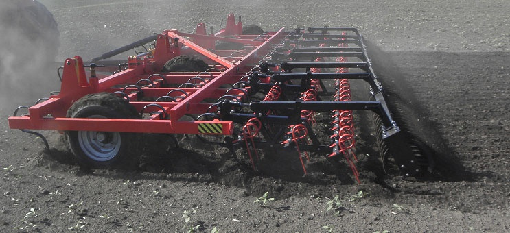 - Две или Три штригельные бороны, регулируемые по высоте и углу наклона, обеспечивает равномерное распределение растительных остатков по всей ширине обработки и производит дополнительное вычесывание подрезанных сорняков.