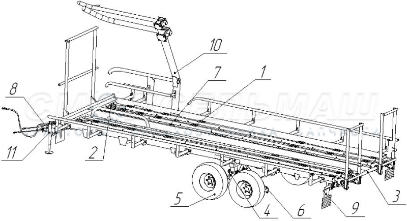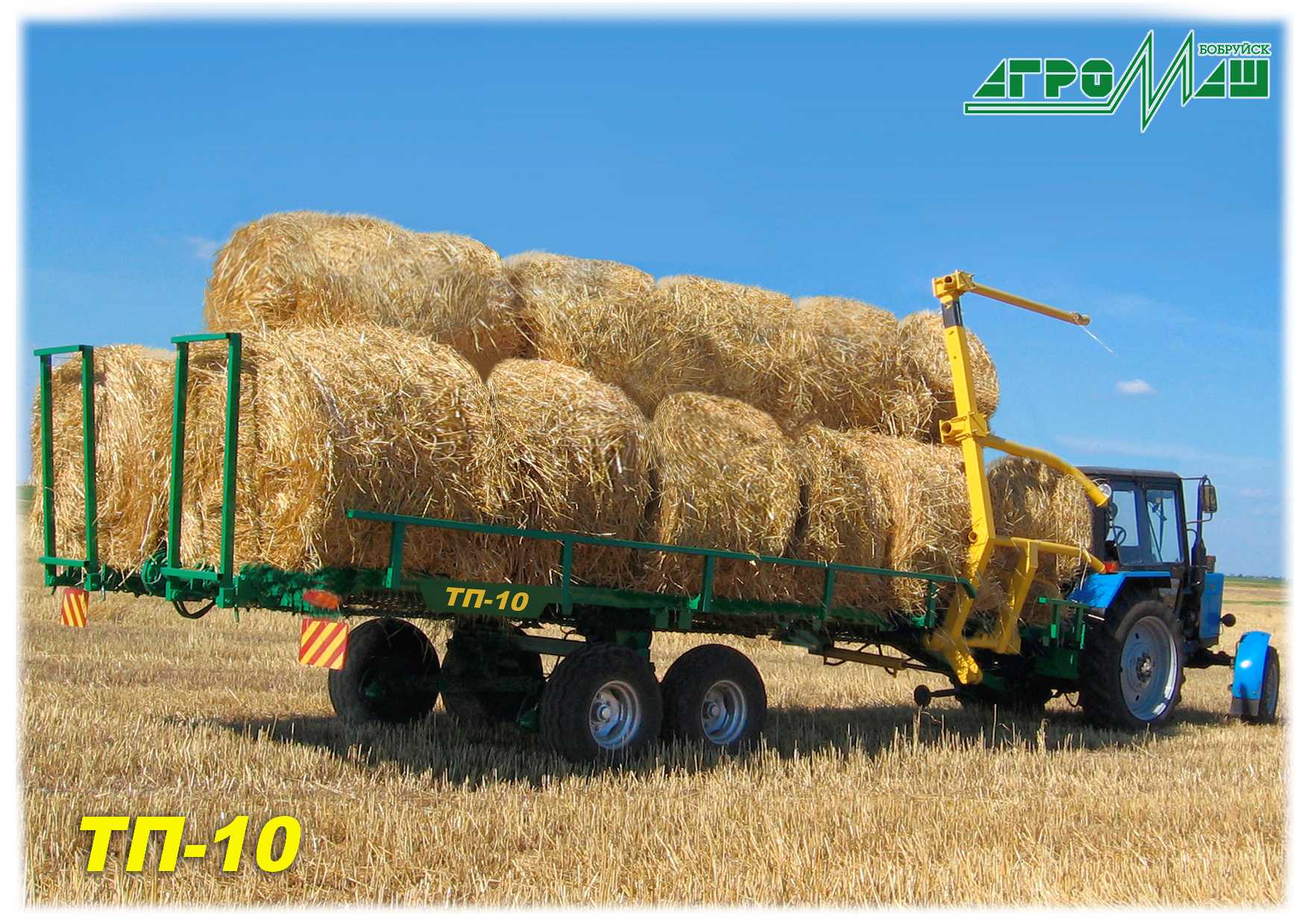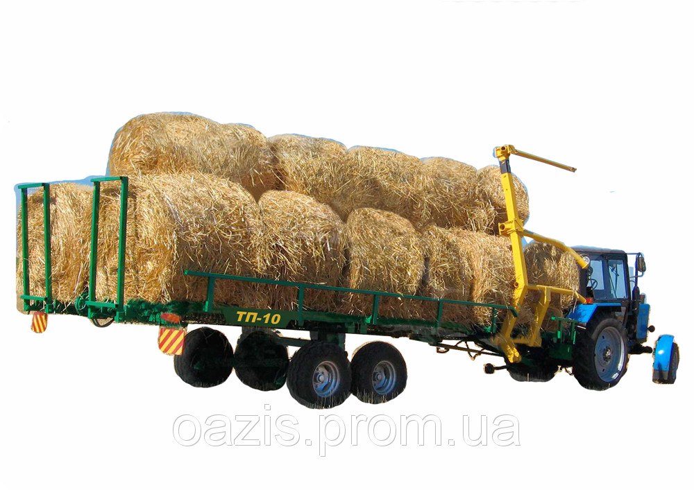 Транспортировщик рулонов ТП-10 предназначен для погрузки, перевозки и разгрузки рулонов сена, соломы, льна, сформированных пресс-подборщиками.