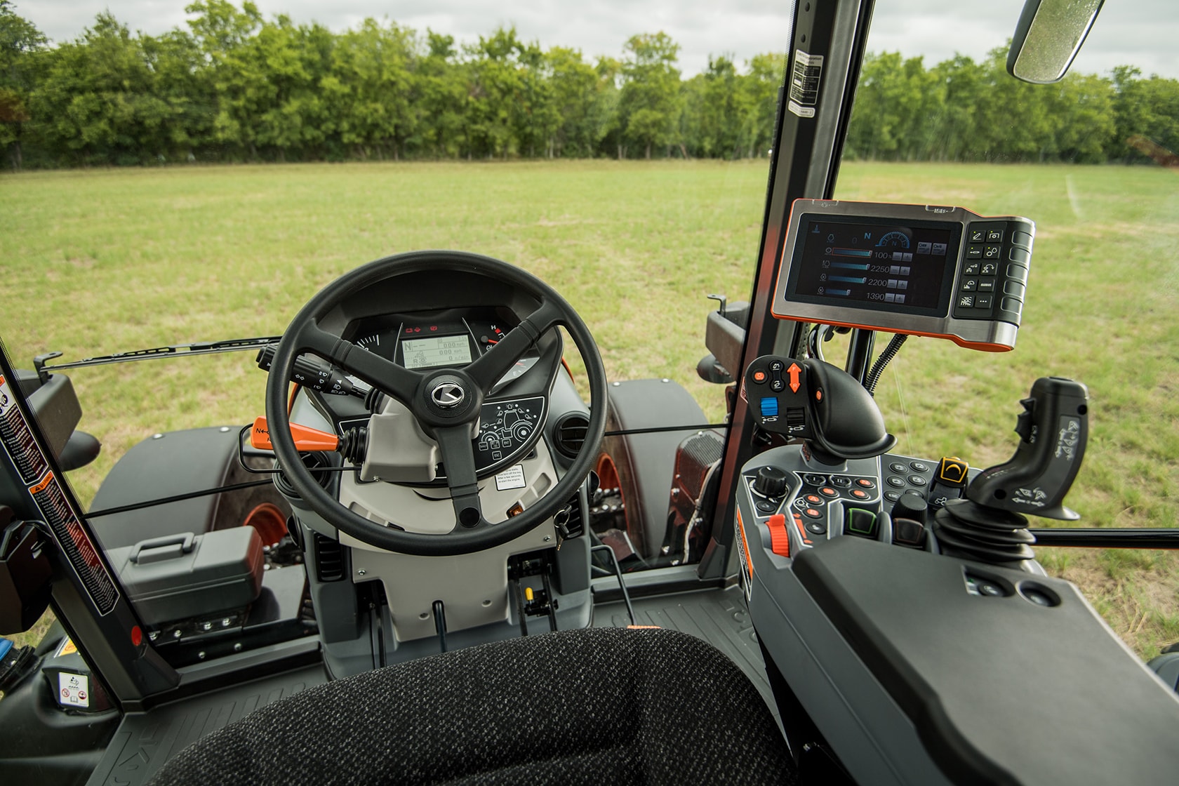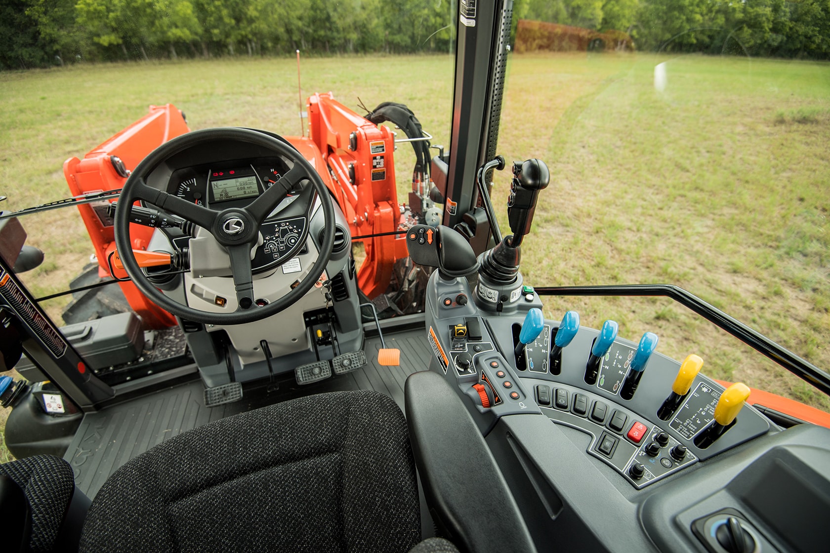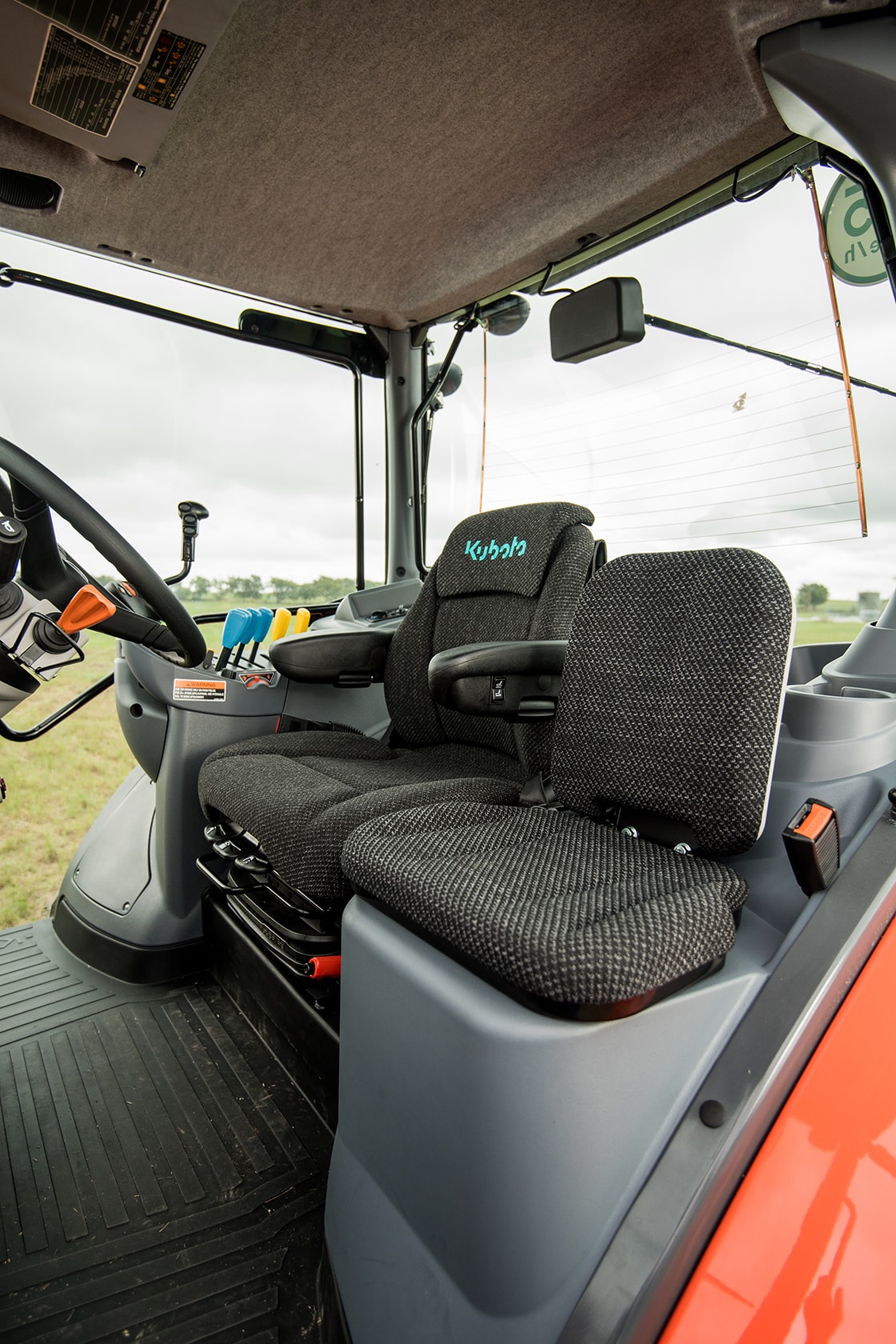Усовершенствованная кабина трактора Kubota предназначена для повышенного комфорта. Все дисплеи, рычаги и органы управления, расположены на правой консоли или вокруг рулевого колеса для облегчения доступа и интуитивно понятного управления.