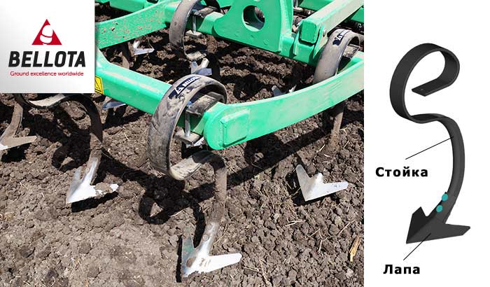 -Культиваторы оснащены пружинными блоками безопасности, предохраняющими лапы и стойки от поломки, которые исключают возникновение предельных нагрузок на лапу и снижают тяговое усилие.