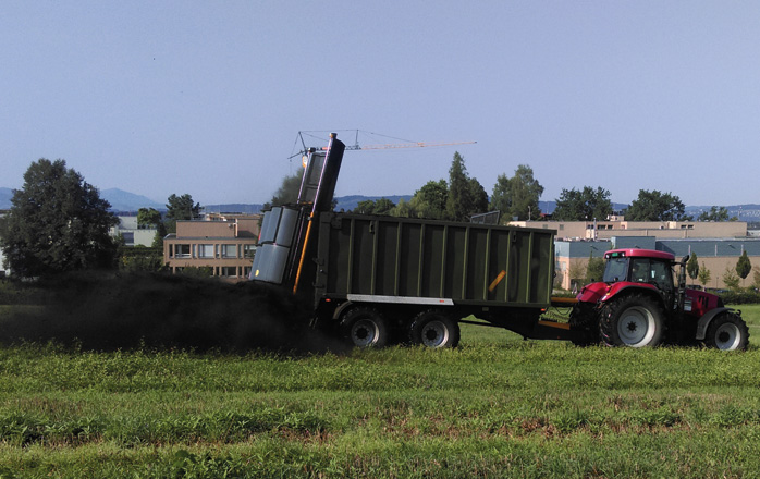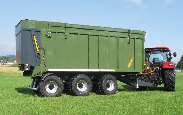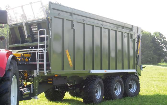 - Эта система разгрузки дает возможность установить на прицеп– подпресовывает зеленую массу, силос, сенаж - тем самым берет на 30-50% больше груза; навозоразбрасывающий механизм и перегрузочный шнек.