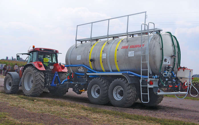 Полуприцеп-цистерна из нержавеющей стали для качественного приготовления, смешивания и дозирования маточного раствора ядохимикатов.