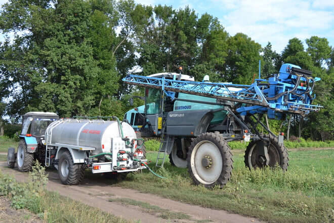 При 6-часовой смене опрыскиватель делает три заправки (1 час работа, 1 часа заправка). При 10-минутной заправке обработанная площадь увеличивается на 70%.