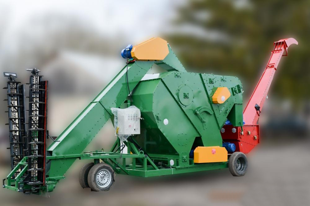 МЗК-100М от производителя ООО «Воронежагротехсервис» г. Воронеж предназначена для предварительной очистки от сорных примесей поступающего с поля зернового вороха колосовых, крупяных, зернобобовых культур, кукурузы, сорго и подсолнечника с последующей загрузкой очищенного материала в транспортное средство, либо складирование в бурт высотой до 8 метров.