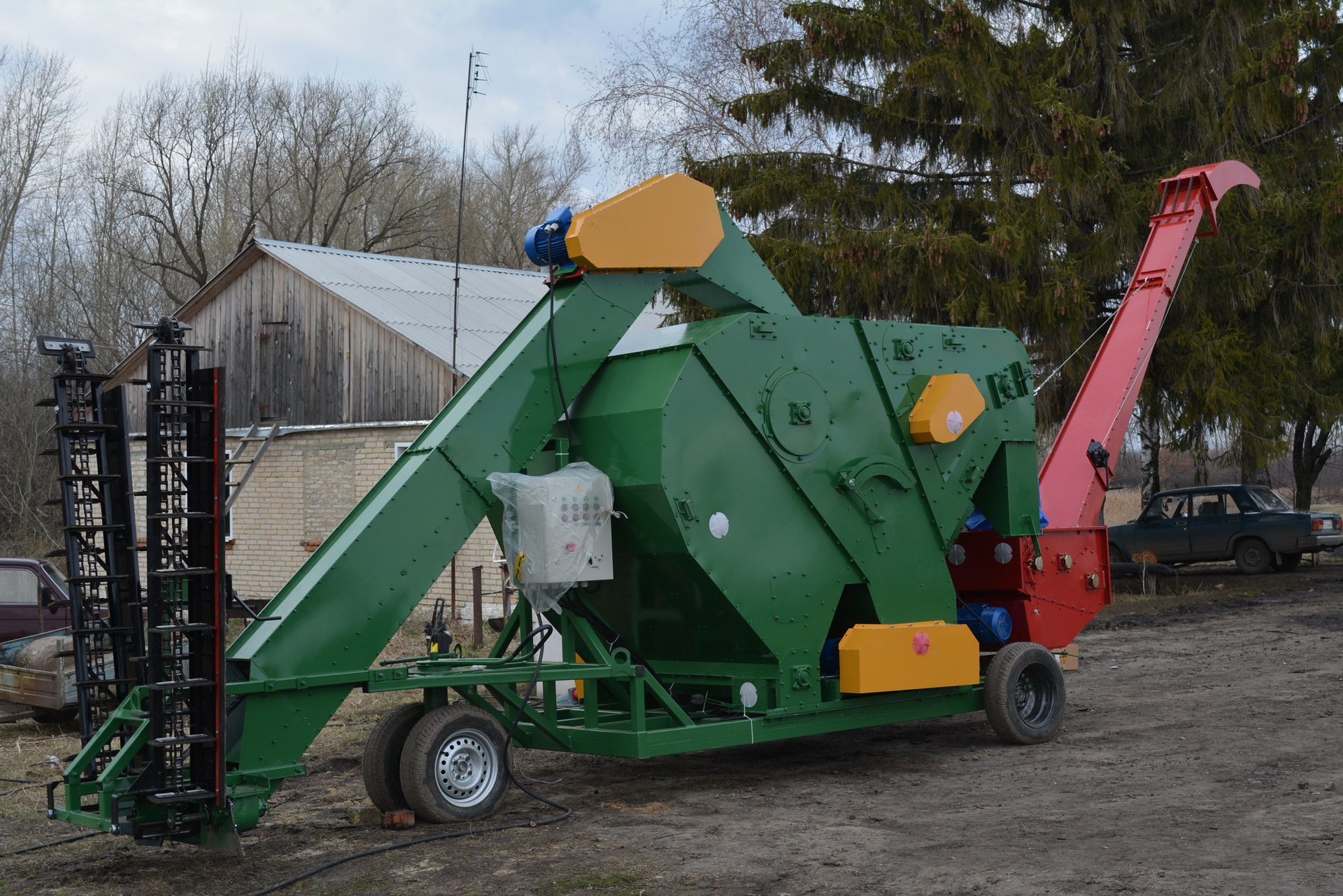 Оснащен зерноочистительной машиной МПО-50.