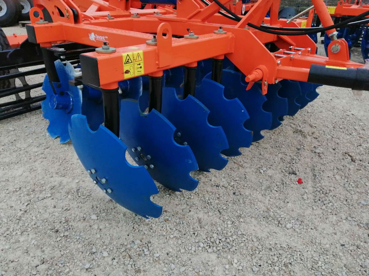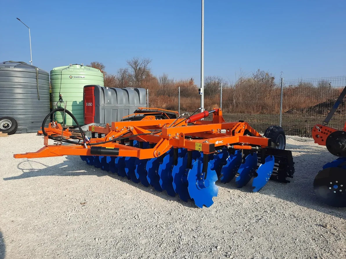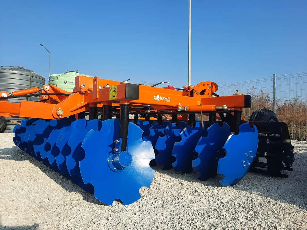 Конструкция агрегата обеспечивает плавную регулировку угла атаки каждого ряда дисков от 0 до 30 градусов, что позволяет оптимально настроить борону для разных типов почвы.