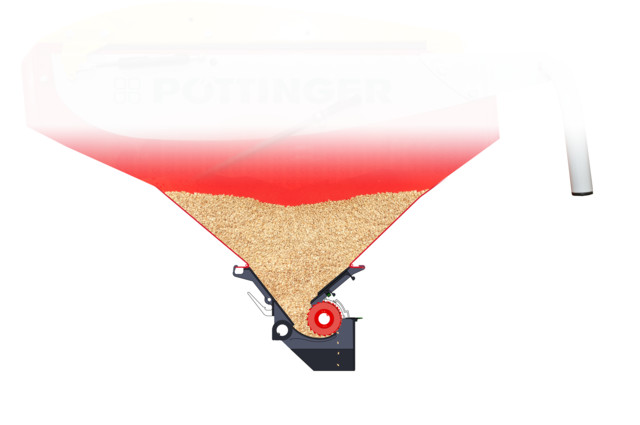 Нижние клапаны регулируются централизованно. Подпружиненные заслонки с автономной регулировкой позволяют легко избежать посторонних предметов. Встроенная в клапан перегородка предотвращает переполнение материала. Высокая стенка препятствует пересыпанию мелких семян в дозирующую катушку с обычными семенами, благодаря чему гарантируется абсолютно точный высев.