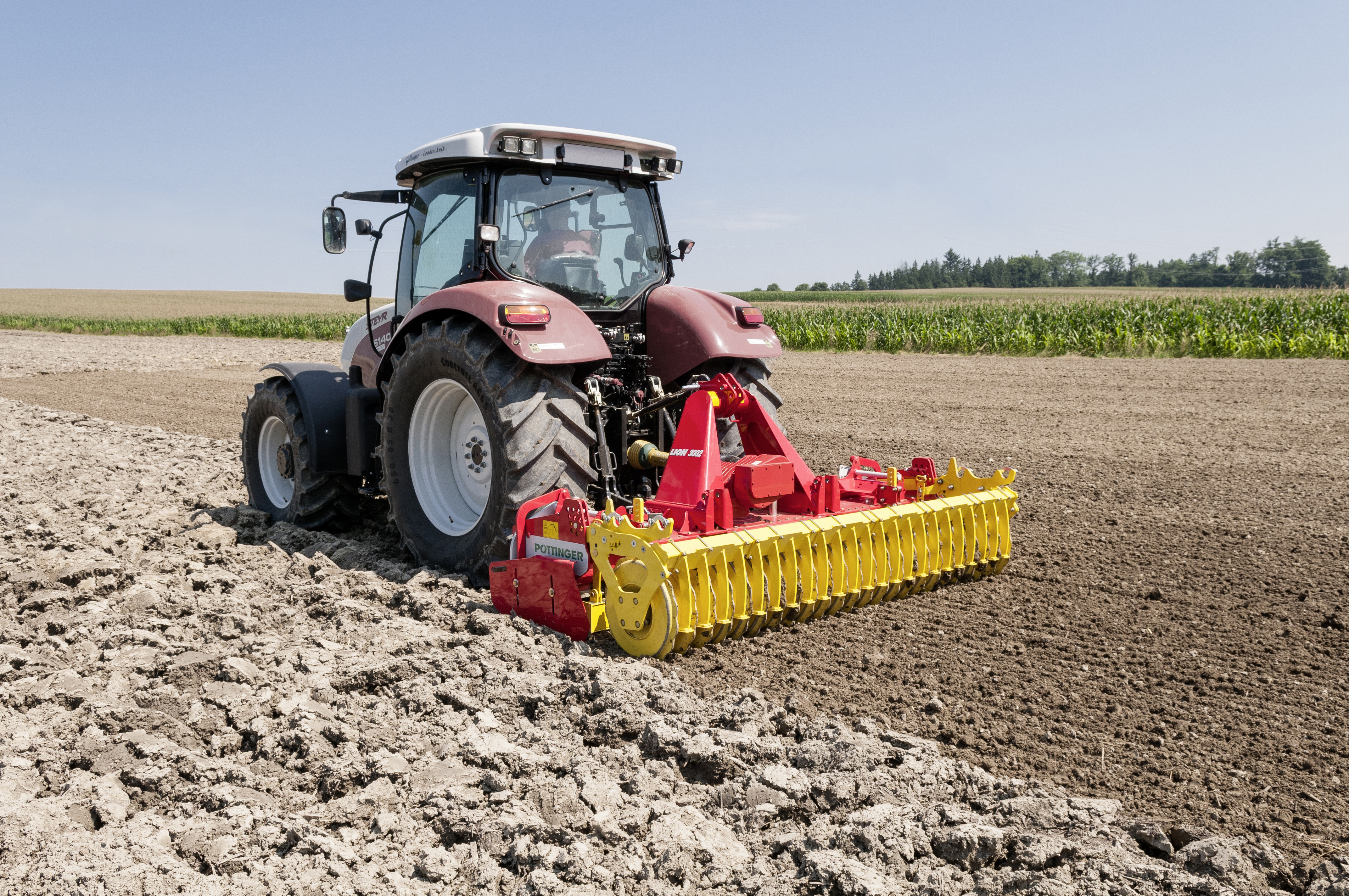 Еще одно преимущество ротационной бороны LION – задняя выравнивающая балка, которая автоматически регулируется по глубине вместе с прикатывающим катком независимо от рабочей глубины. Выравнивающая балка постоянно ведется на определенном установленном расстоянии от земли, в то время как расстояние к зубьям не меняется. Это запатентованное решение обеспечивает равномерное измельчение и тщательное перемешивание рабочего горизонта даже при изменяющихся почвенных условиях.