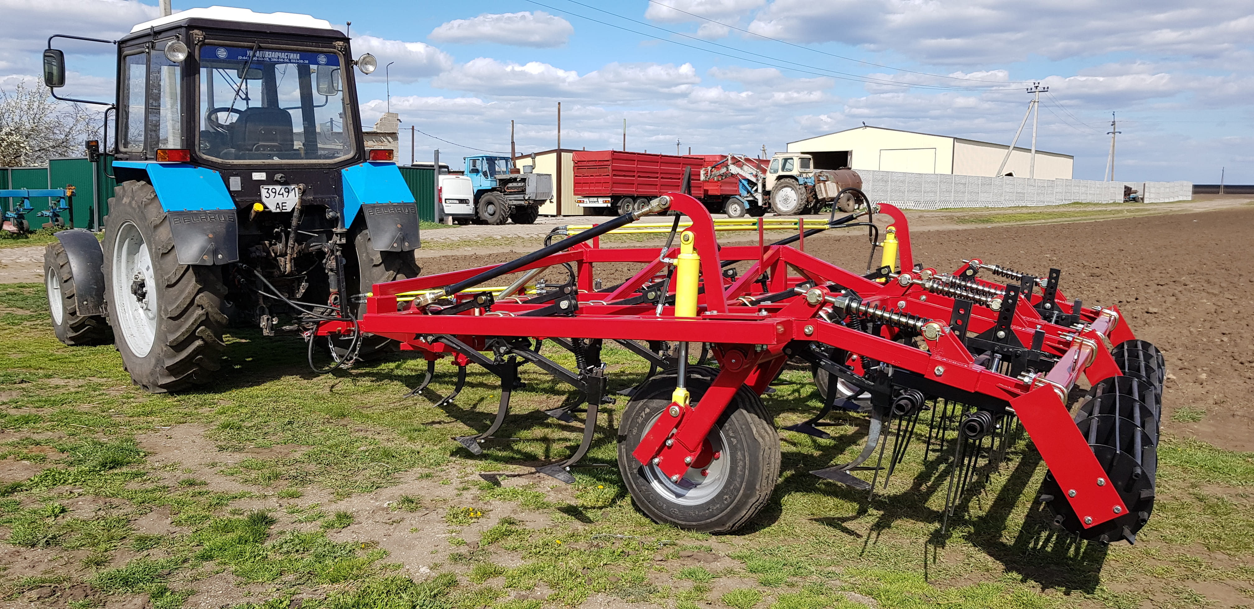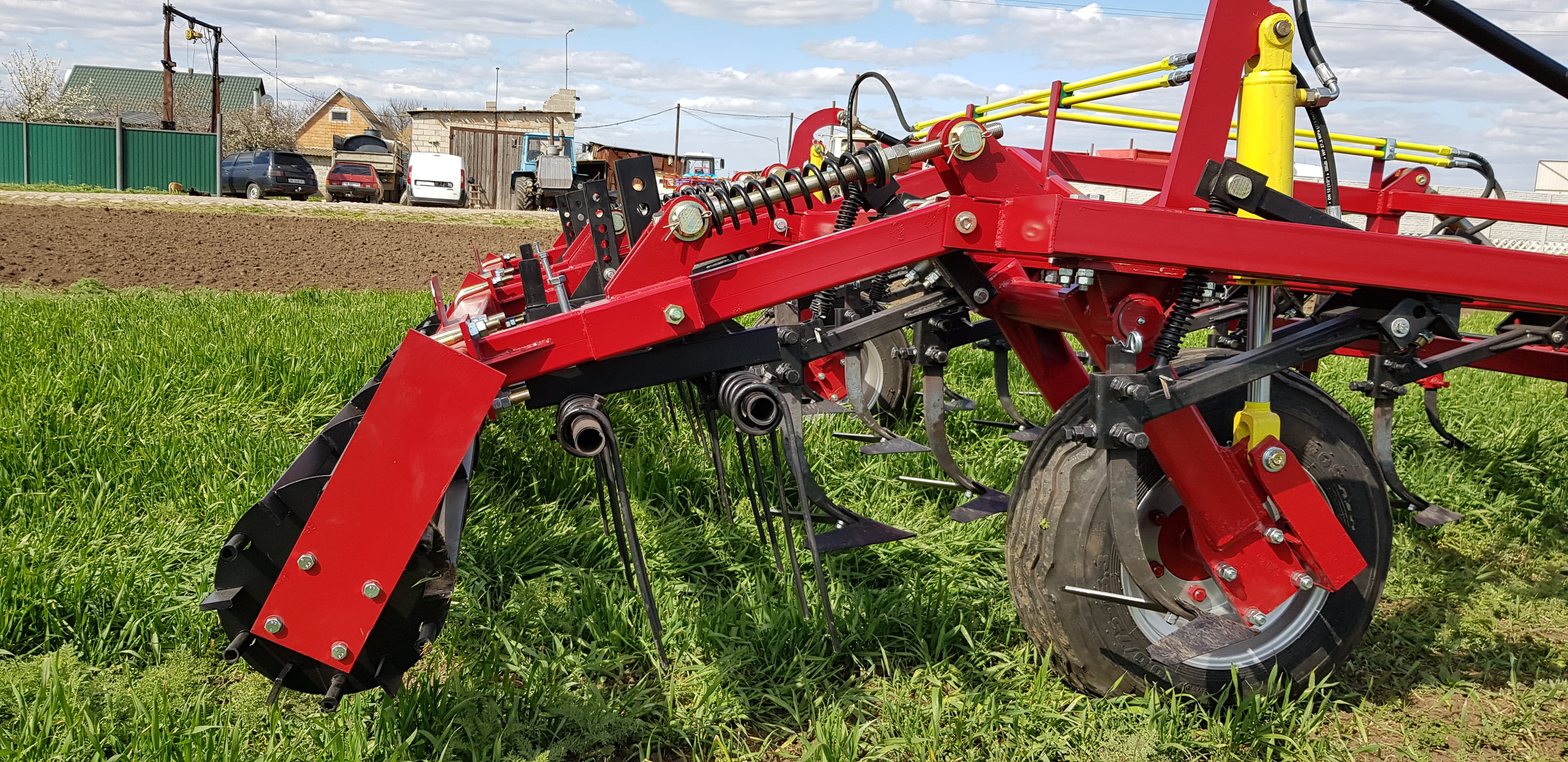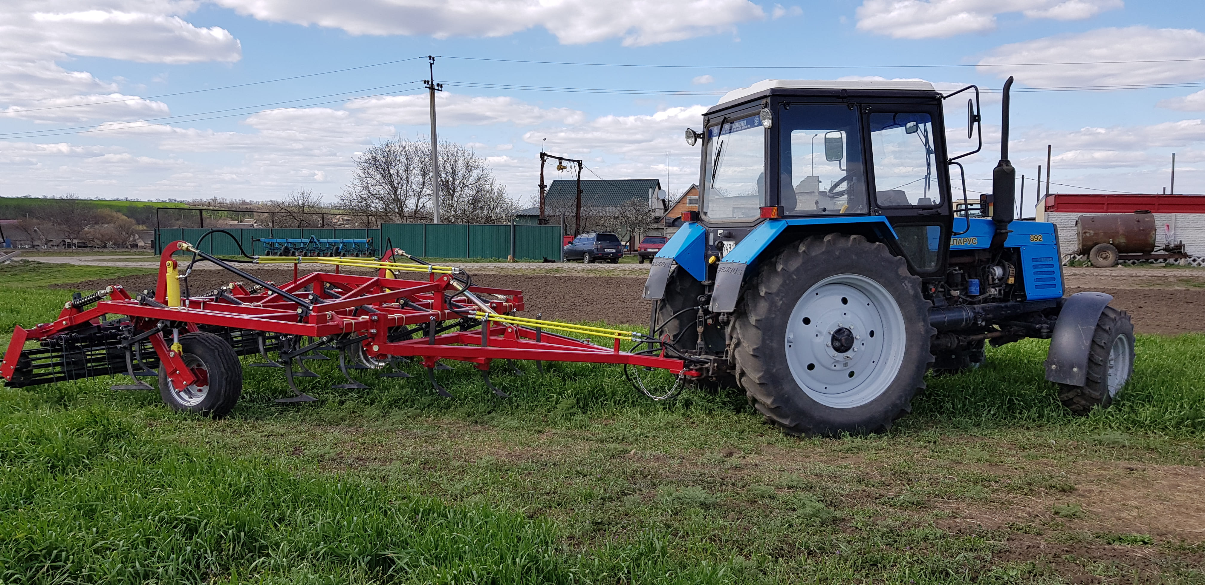 Благодаря применению пружинных стоек из профиля 20х20 и долот испанской фирмы Bellota разрыхляется переуплотненный слой почвы за колесами трактора.