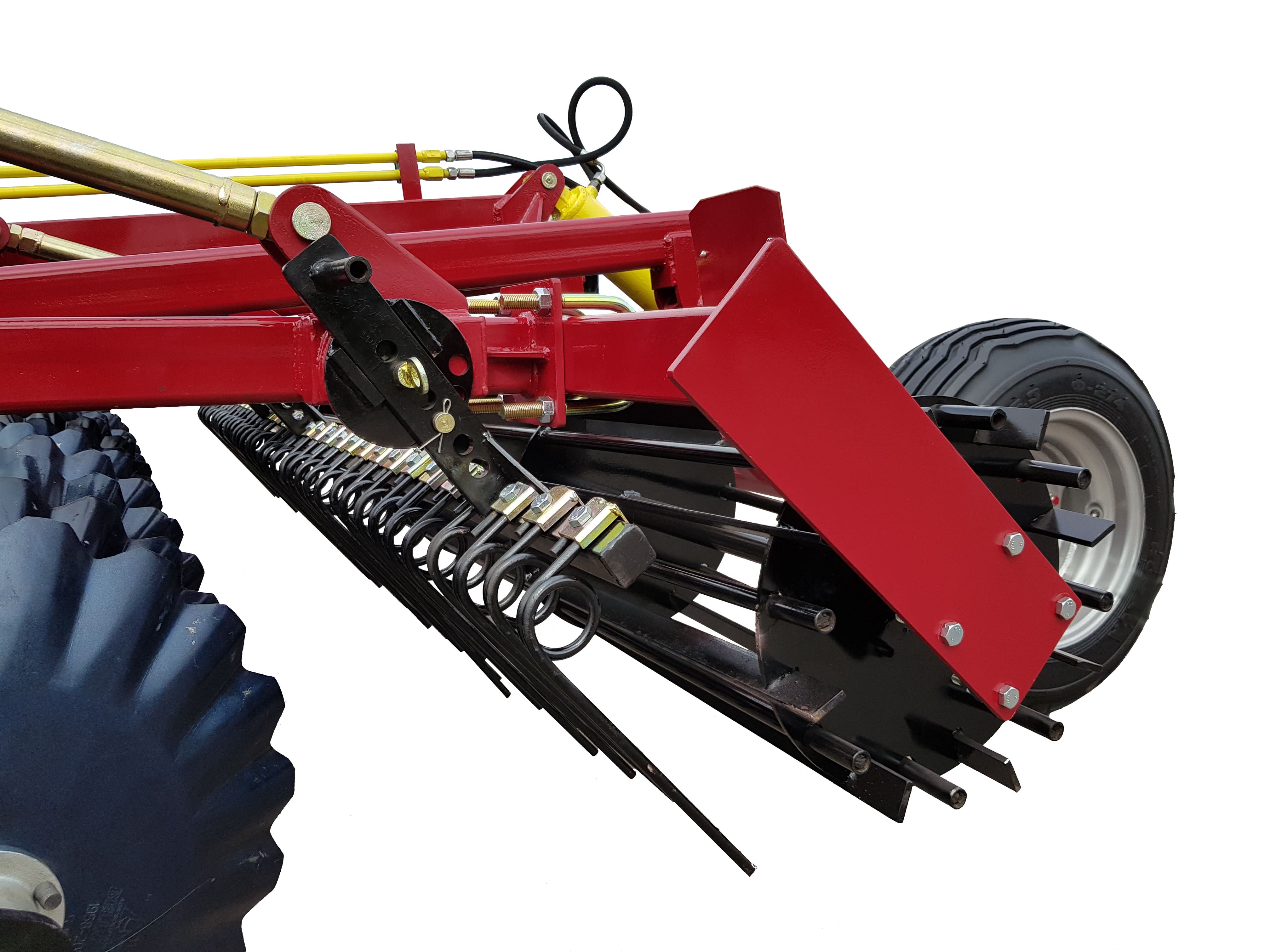 Пружинный регулируемый отбойник, устанавливаемый за вторым рядом дисков, укладывает вал земли и растительных остатков перед катком, обеспечивая более ровное их распределение.