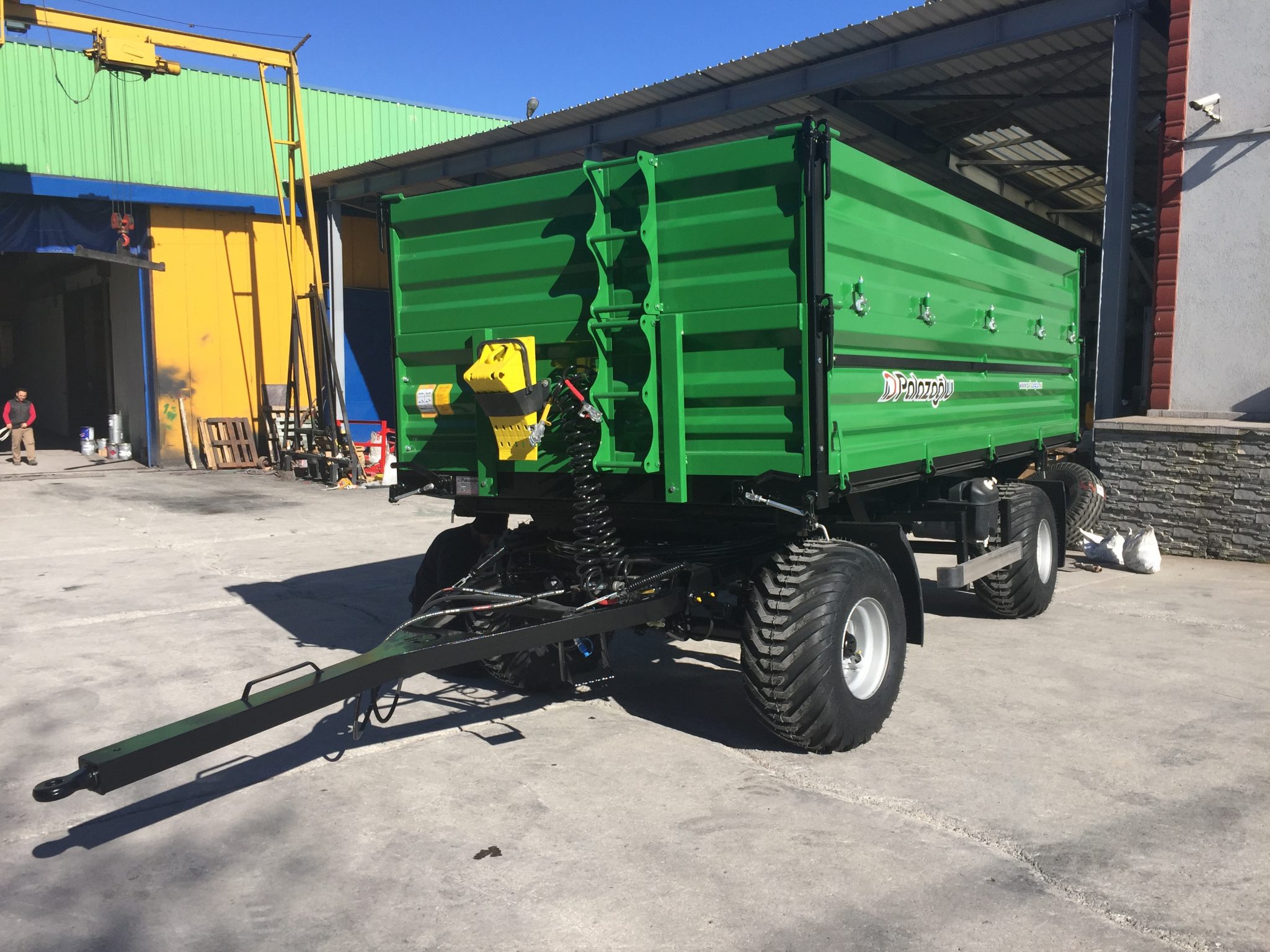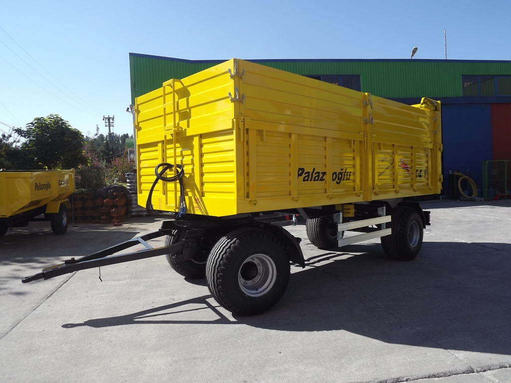 Двухосные прицепы идеально подходят для сельского хозяйства, а также для общего использования. Прицепы оборудованы трехсторонним самосвальным механизмом. Задняя стойка позволяет легко выгружать сырье, сельскохозяйственную продукцию и строительные материалы. Прочная рама рассчитана на большие нагрузки и обеспечивает максимальную жесткость на кручение. Параболическая подвеска обеспечивает равномерную нагрузку на ось при быстрой езде. При этом безопасность опрокидывания выше.