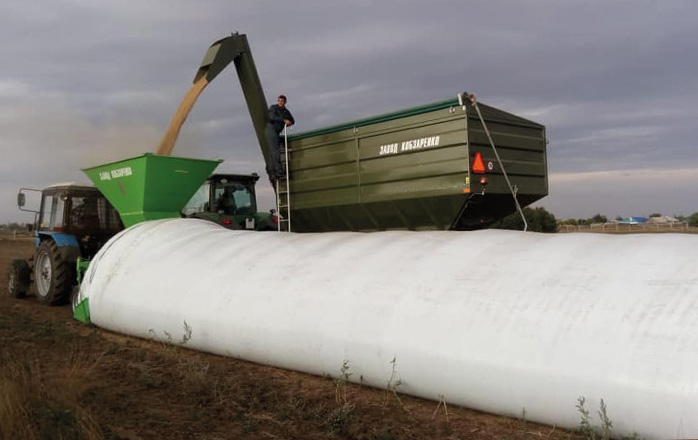 Хозяйства, которые сохраняют зерно в рукавах, уже забыли об очередях и простоях зерновозов на элеваторах. Закладывают рукава в наиболее подходящем месте.