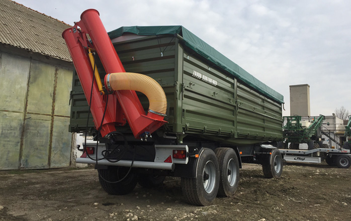Шнек приваривается к борту. Борт имеет трапециоподобную форму – это дает возможность зерну или минеральным удобрениям самотеком попадать в шнековый механизм. Данный борт со шнеком устсанавливается на тракторные прицепы или самосвальные автомобили. При установке на самосвальный автомобиль необходимо установить двухсекционный гидрораспределитель.