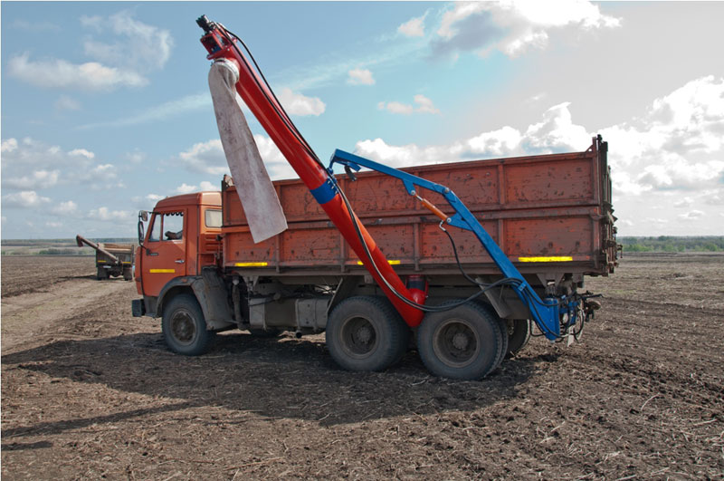 Благодаря шиберу, который крепится к днищу, 50% зерна выгружается без подъема кузова.