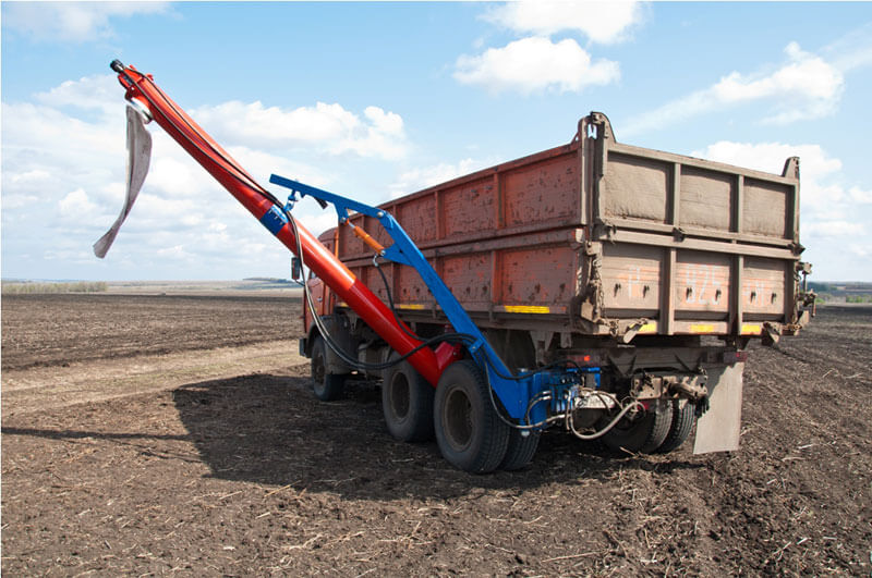 Шнековый транспортер: стальной, толщина витка 2,5-4 мм, покрыт антикоррозионой краской устойчивой против атмосферного влияния. Шнековый транспортер приводится в действие от гидравлики автомобиля через гидромотор.