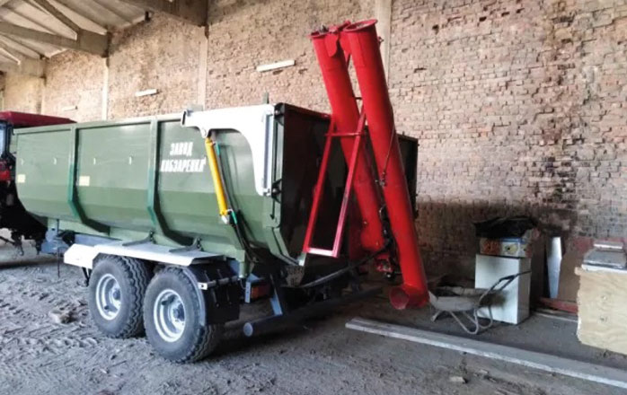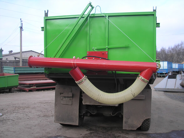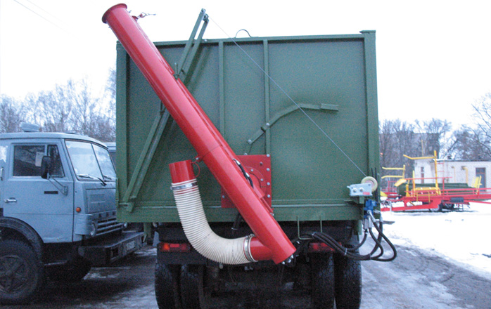 Шнек крепится к борту с помощью специального крепления. Угол наклона регулируется с помощью лебедки. Также шнек имеет: люк для чистки, задвижку-шибер и рукав ПВХ длиной 1200 мм.