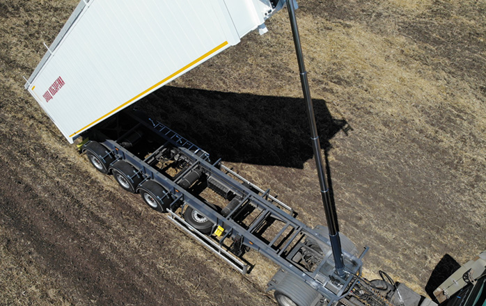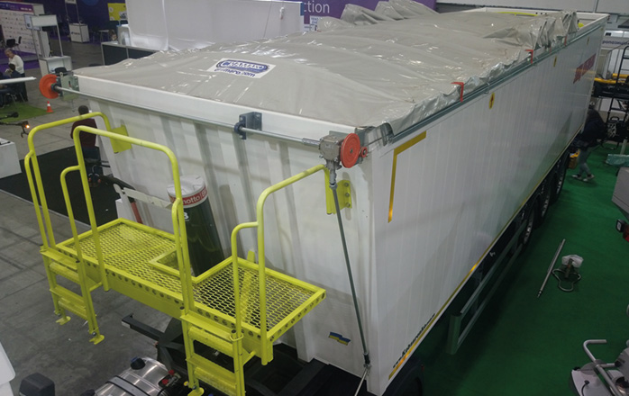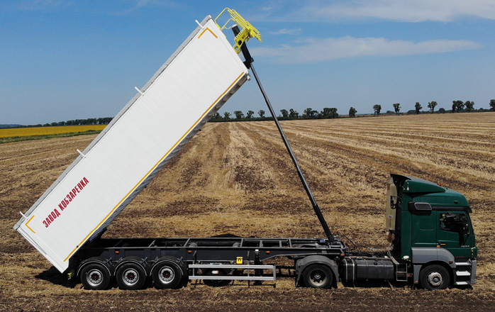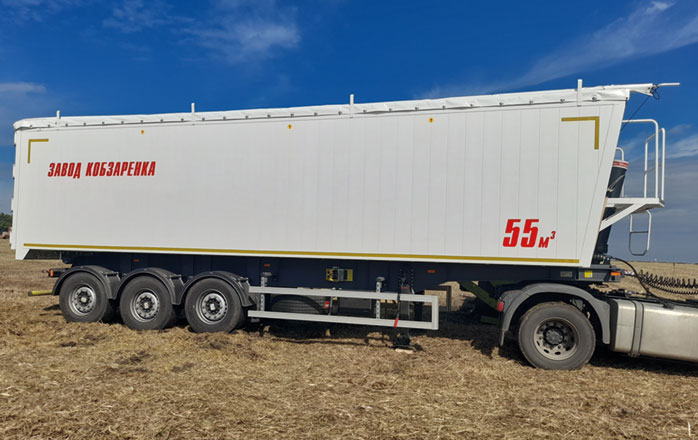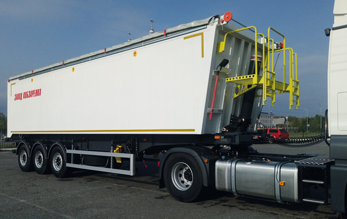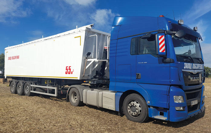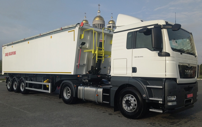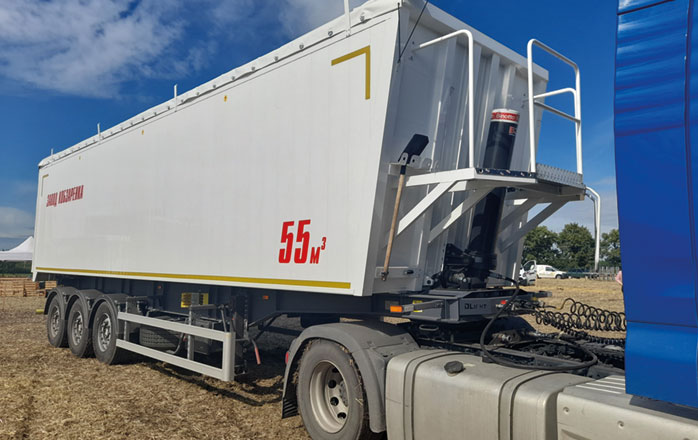 Облегченная конструкция алюминиевого 55-кубового зерновоза позволяет перевозить груза на 2 т больше, чем аналогичные полуприцепы из стали - без нарушения весовых норм.