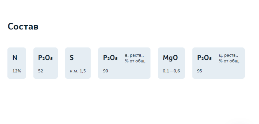 Гранулированное удобрение для обеспечения сельскохозяйственных растений легкодоступным фосфором и в небольшом количестве — азотом. Отличное стартовое удобрение для внесения при посеве (посадке). При понижении температуры обеспечивает необходимое фосфорное питание растений. Обеспечивает временное подкисление почвы вокруг гранулы, поэтому обладает некоторыми преимуществами на нейтральных и щелочных почвах.