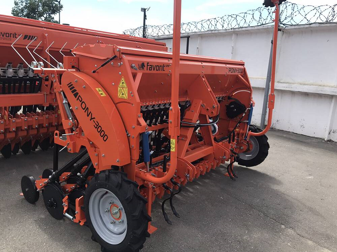 Навесная сеялка зернотуковая рядовая Фаворит «PONY» предназначена для рядового посева семян зерновых культур (пшеница, рожь, ячмень, овес), бобовых культур (горох, фасоль, соя, чечевица, бобы, нут, чина, люпин) рапса, льна и льна. в засеваемые строки гранулированных минеральных удобрений и малым прикатыванием почвы.