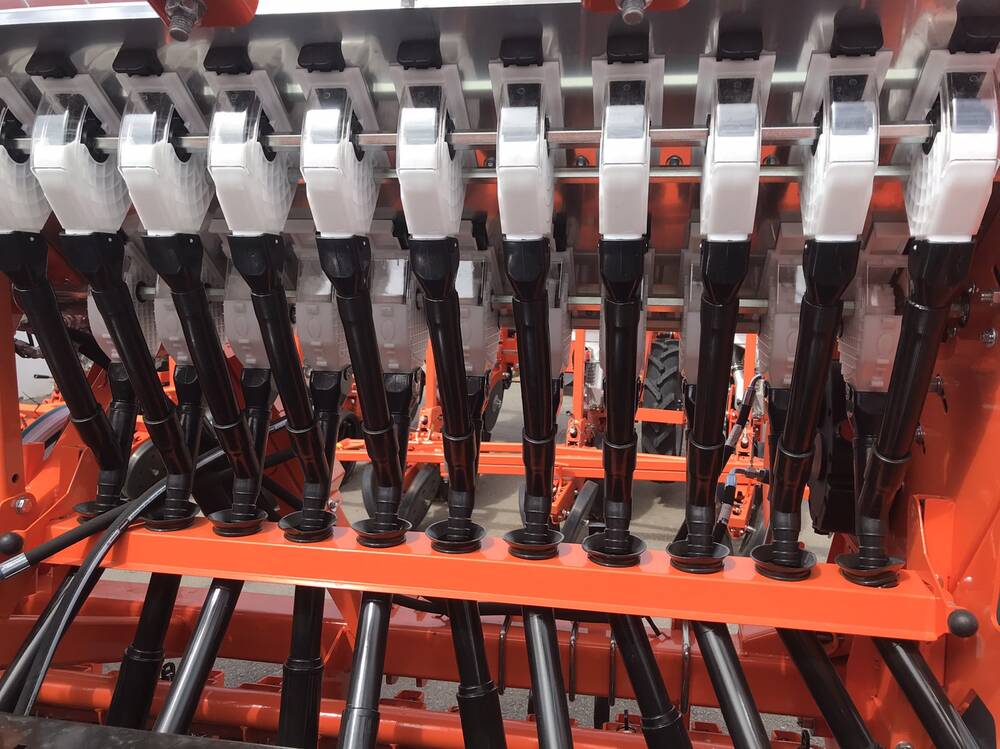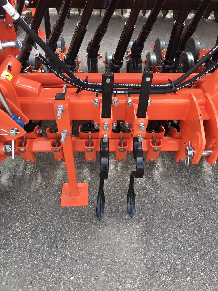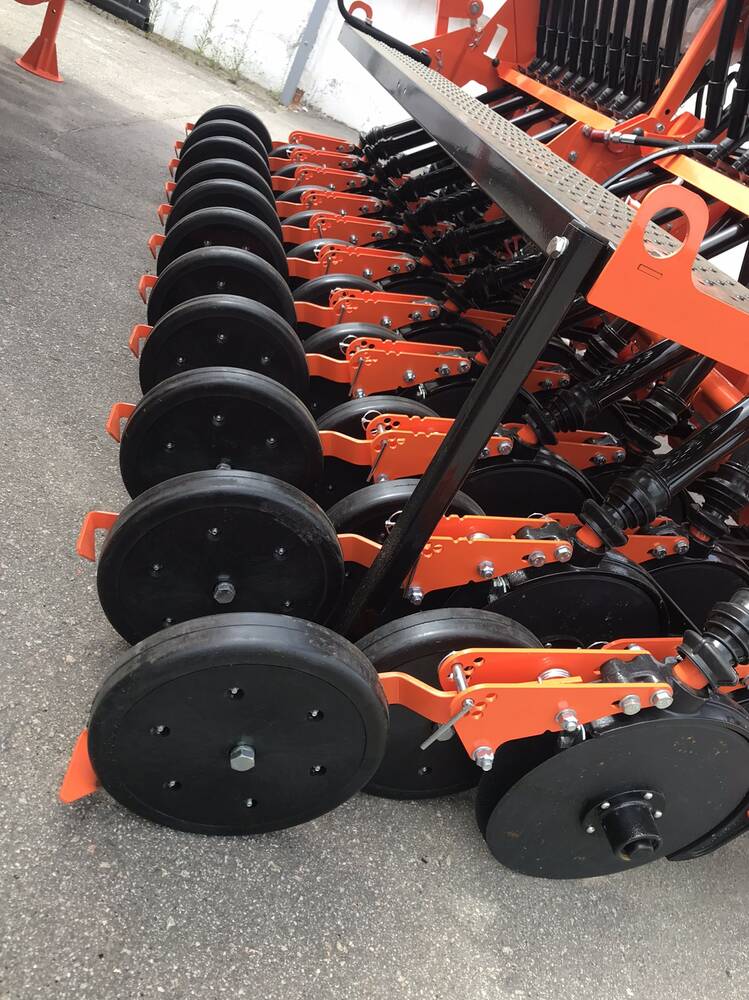 Оснащена двухдисковыми сошниками со смещением из бор содержащей стали, что даёт высокий ресурс, лучшее прорезание остатков и эффект самоочищения сошников.