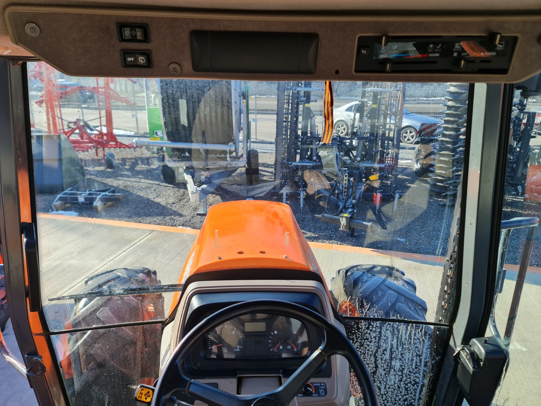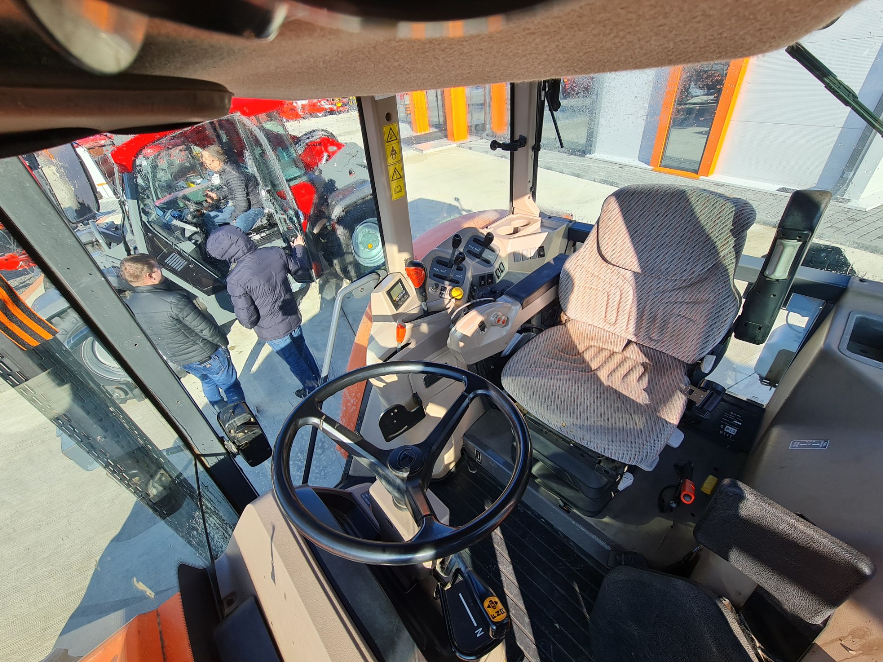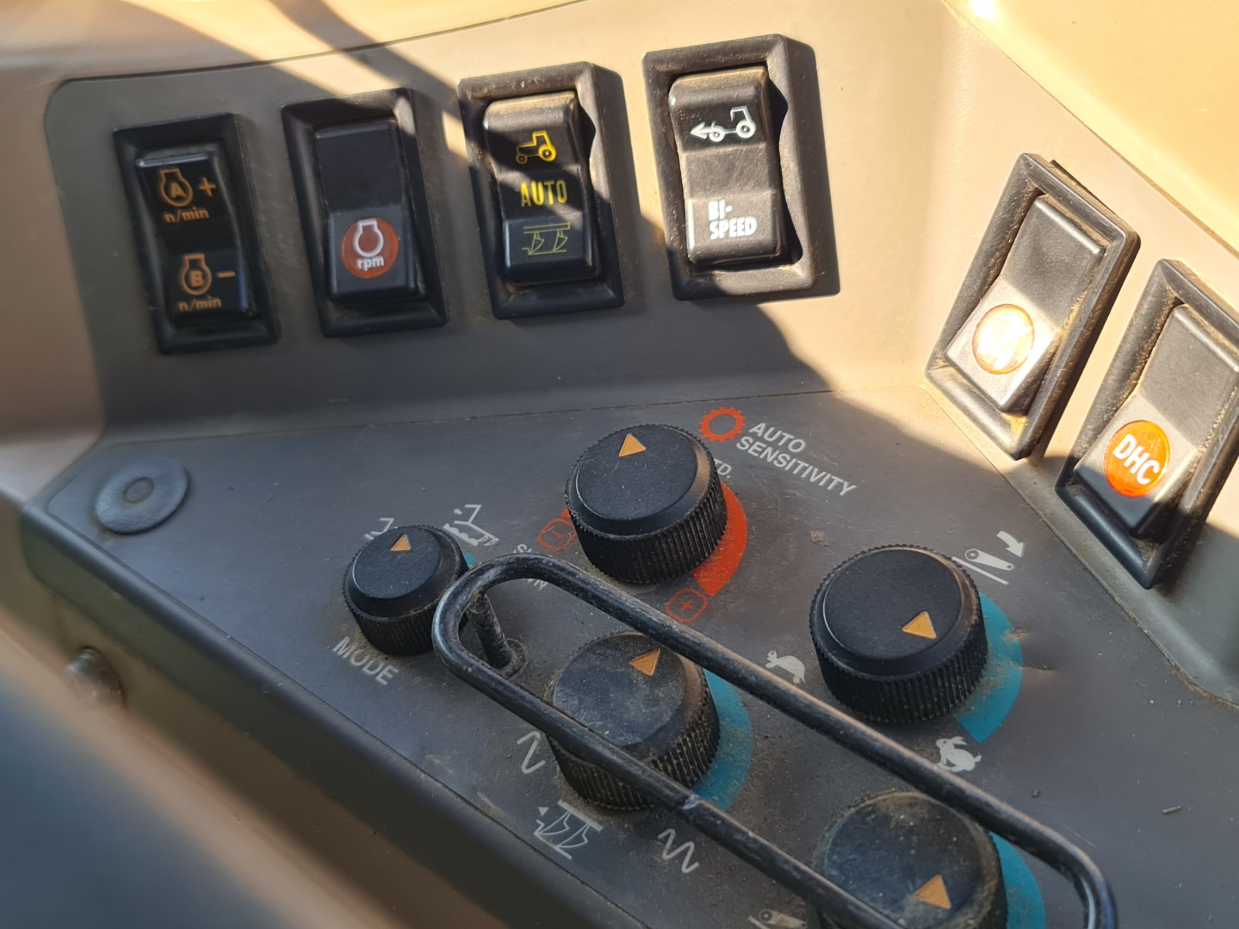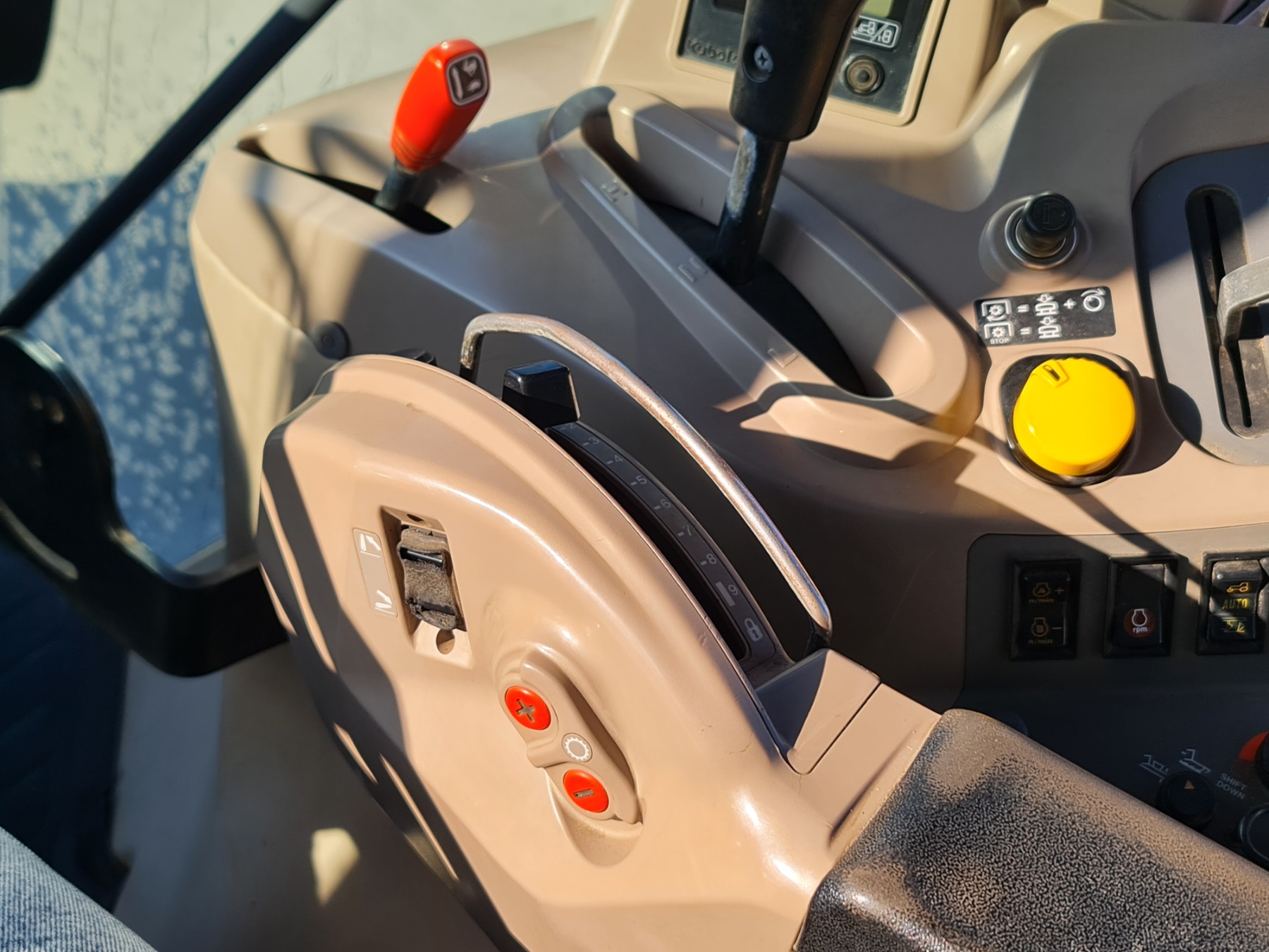 Кнопки для переключения передач и управления функциями трактора встроены в подлокотник, что повышает удобство использования и снижает утомляемость.
