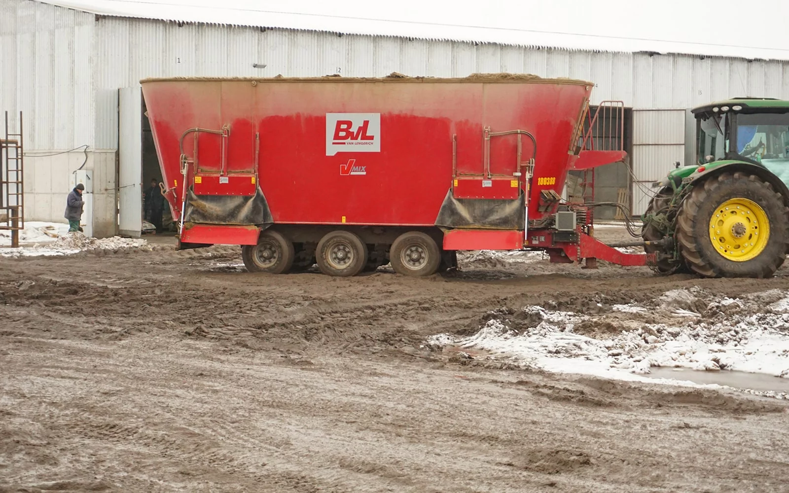 Гигант среди кормосмесителей BvL Ёмкость от 40 и 46 м³ – этого хватит, чтобы накормить почти 400 коров. Такой исполинский размер требует особенную мощность. Поэтому серия V-MIX Giant в стандартной комплектации оснащена редуктором BvL Powershift. Это понижающий редуктор с гидравлическим сцеплением, благодаря которому кормосмеситель может начинать движение на низкой передаче, а под нагрузкой переходить на полное число оборотов смешивания. Необходимая мощность снижается как раз при запуске и вся трансмиссия - от трактора до смесительного шнека - очень бережно эксплуатируется.