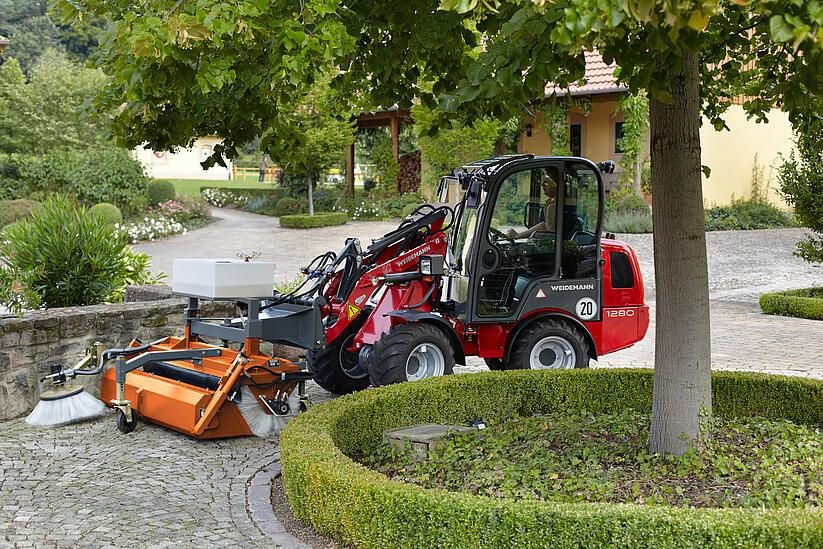 Модель 1280 обеспечивает средний диапазон производительности в сегменте Weidemann Hoftrac, поэтому с помощью этого погрузчика можно оптимально выполнять широкий спектр рабочих задач. Благодаря различным вариантам оснащения возможна конфигурация опрокидывающей нагрузки 1 385 кг – 1 781 кг с прямым ковшом. Кроме того, Hoftrac 1280 может быть опционально оснащен удлиненным погрузочным рычагом. Удлиненный погрузочный рычаг позволяет просто и легко увеличить высоту подъема и не использовать машину большего размера.
