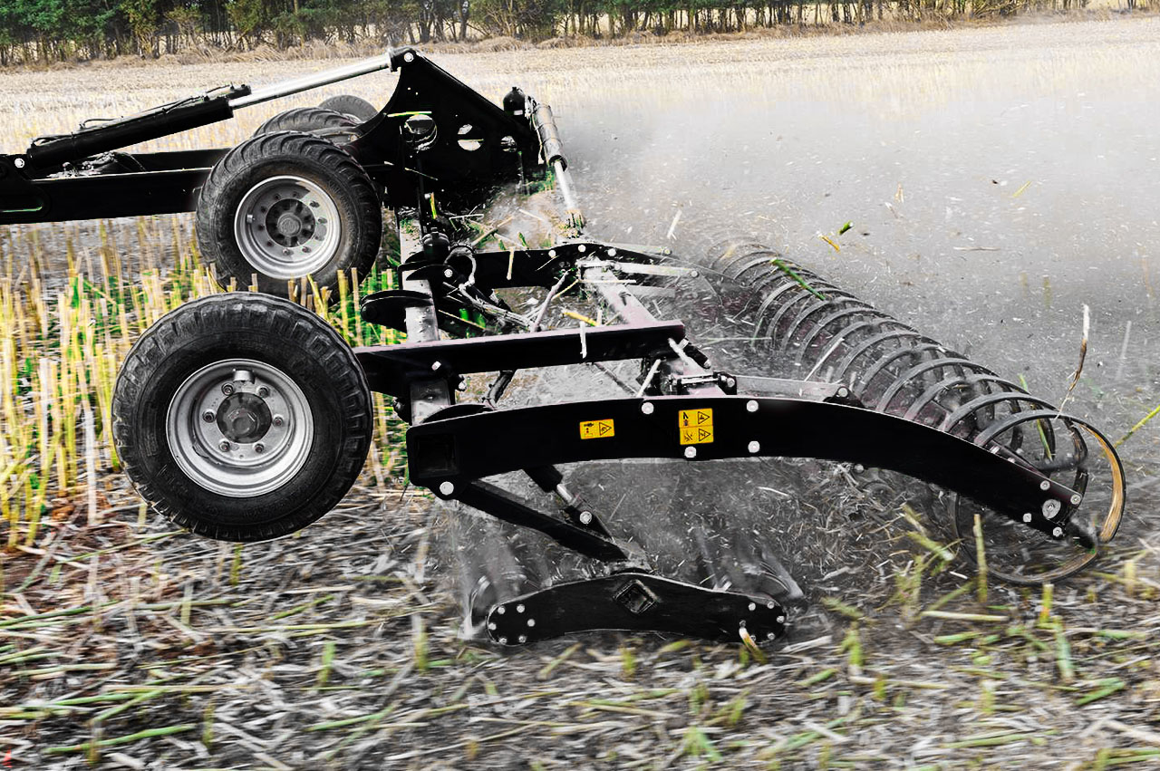 Сверхмощная борона для соломы с гидравлической регулировкой обеспечивает тщательное измельчение комьев почвы и равномерное распределение органических остатков.